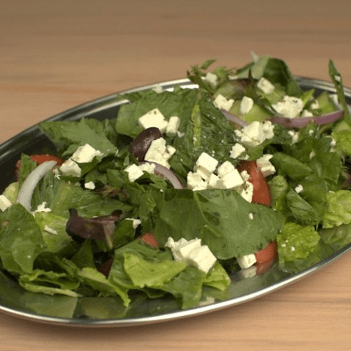 Lettuce l Tomatoes l Cucumbers l Purple Onions l Feta Cheese l Vinaigrette Dressing