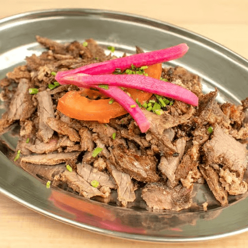 Marinated & Seasoned Beef Shwarma with a choice of 3 sides. Served with 1 flatbread!